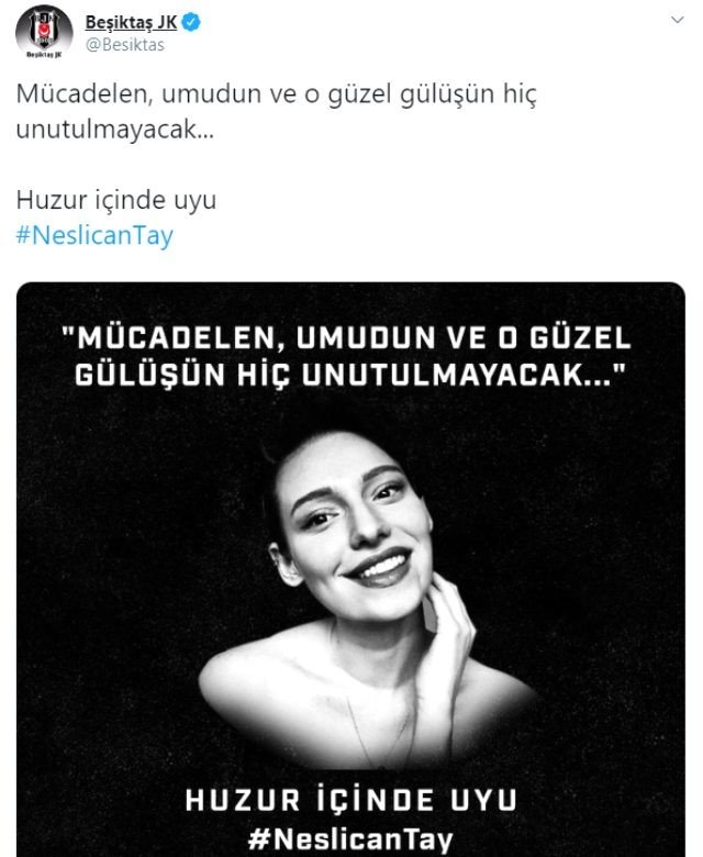 Haberler / güncel neslican tay anma sözleri ne zaman öldü yaşı kaçtı? Megastar tarkan tevetoğlu, instagram hesabından neslican tay için taziye mesajı yayınlandı. Hiçte aklına gelmemiş bacak ağrısıdır geçer çünkü sporla uğraşan biri olduğu için kas ağrısı,kas yorgunluğu der geçiştirirmiş. Neslican tay için son dakika çağrı! Rizeli bir anne ve manisalı bir babanın kızı olan neslican tay ilköğretim ve lise eğitimini rize'de tamamladı.